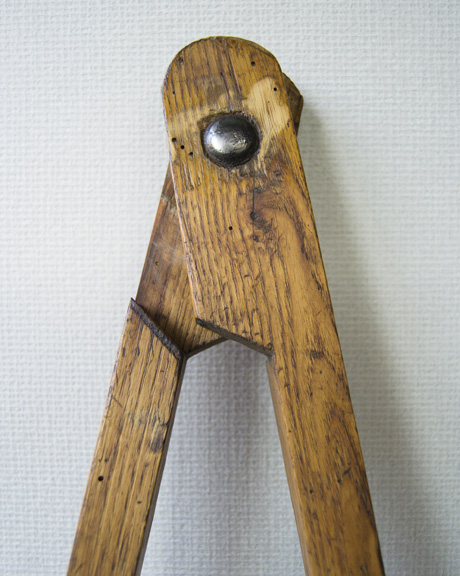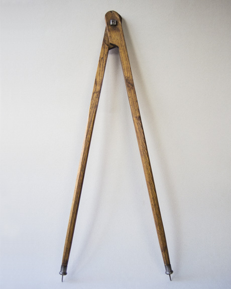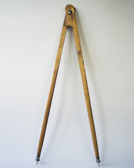 Grande compasso misuratore in legno con punte in ferro. Uno strumento per carpentieri e muratori, raro da trovare in buono stato. Questo è ancora funzionale.