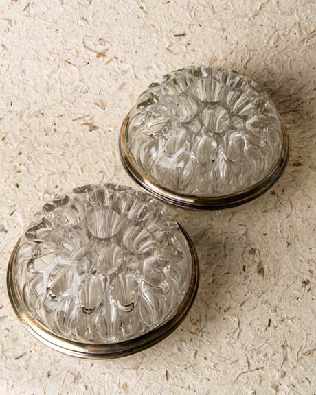 I pique fleur o flower frog in vetro appaiono all’inizio dell’ottocento per aiutare a sistemare i fiori nei vasi in modo più armonioso e naturale. Quelli a forma di disco piatto che presentano un piccolo bordo sporgente per tutta la circonferenza dovevano essere posizionati sopra o nel collo del vaso, mentre quelli bombati o con piccoli piedini dovevano essere collocati in fondo al recipiente. La maggior parte degli esemplari è in vetro trasparente per meglio mimetizzarsi nell’acqua, ma esistono anche esemplari in vetro colorato. Pochissimi sono marchiati.